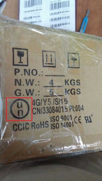 由于UPS拒收一切外包箱面有UN LOGO的纸箱(如下图),UN标志为危险品标志的一种!请各代理收货时特别留意货件外箱,如有此标志的,需要自行更换纸!否则UPS将会拒收!请各客户知悉!